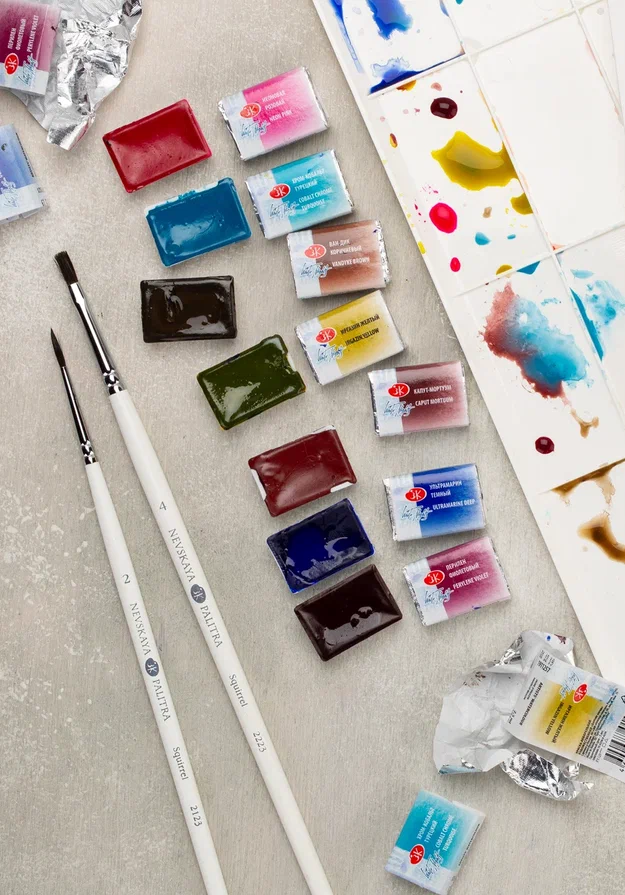 • Forma opakowania: Farby dostępne są w kostkach o pojemności 2,5 ml oraz w tubkach 10 ml, co pozwala na elastyczne dopasowanie do indywidualnych potrzeb artysty.