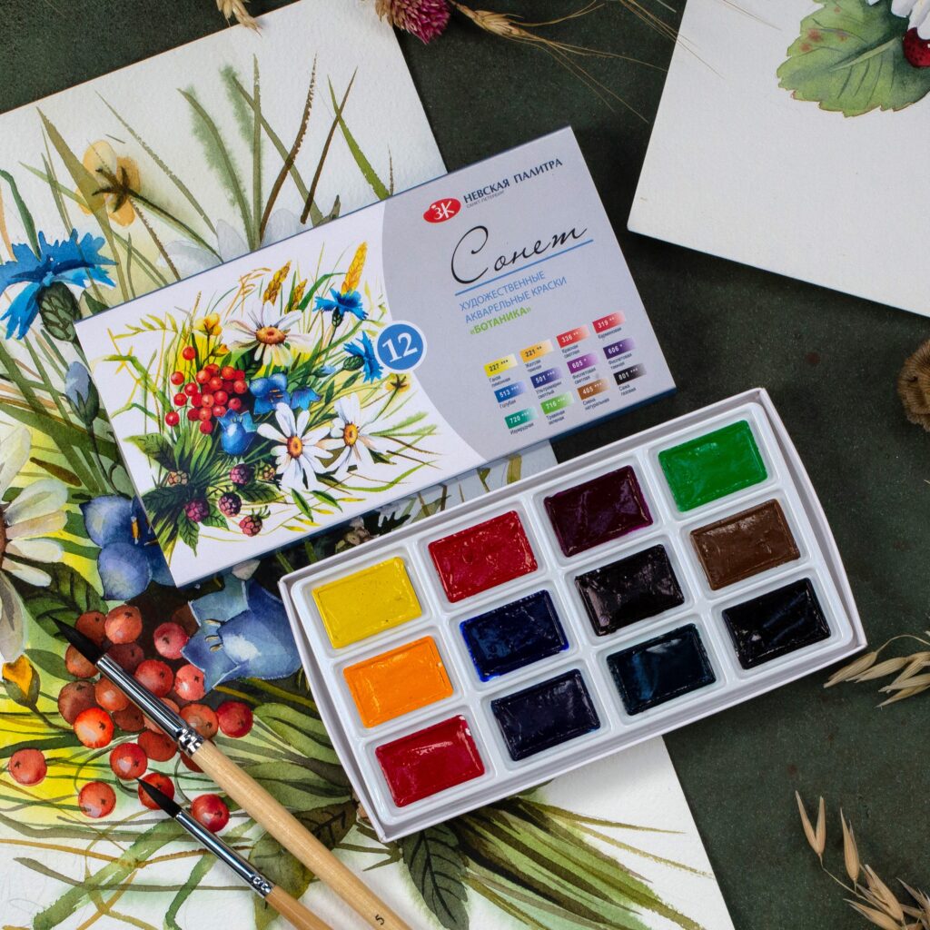 Farby akwarelowe Sonnet to studyjna linia akwareli produkowana przez renomowaną rosyjską firmę Nevskaya Palitra, znaną również z profesjonalnej serii Białe Noce. Sonnet został stworzony z myślą o początkujących artystach, studentach oraz hobbystach, oferując dobrą jakość w przystępnej cenie.